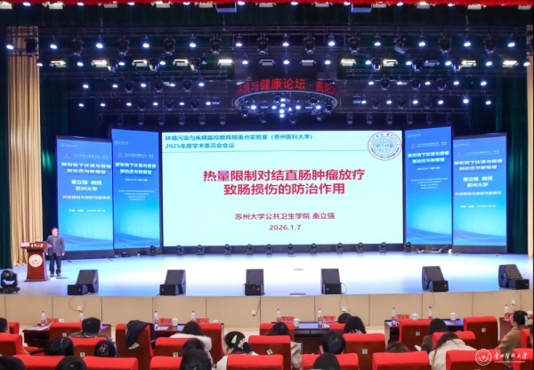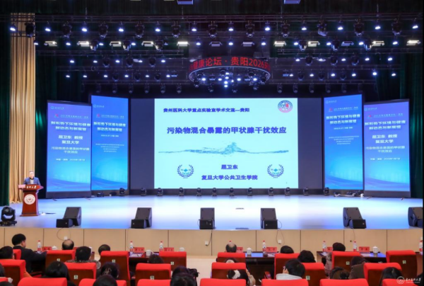 近日,以“新形势下环境与健康新动态与新展望”为主题的2026年环境与健康论坛在贵州医科大学云漫湖校区礼堂召开。论坛由贵州医科大学环境污染与疾病监控教育部重点实验室、公共卫生与健康学院、科学技术处及贵州省环境诱变剂学会联合主办,邀请了青岛大学郑玉新教授、复旦大学屈卫东教授、中山大学陈雯教授、苏州大学秦立强教授、西安交通大学张峰教授作专题报告,共同探讨环境与健康领域前沿动态与发展方向。贵州医科大学师生代表400余人参加了论坛。