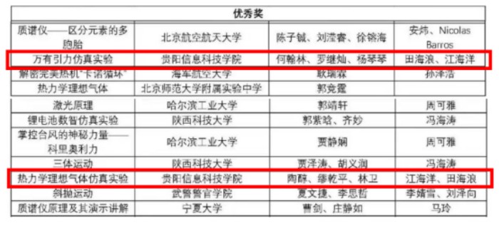 近日,由教育部高等学校大学物理课程教学指导委员会等单位联合主办的首届“NuSEP数智仿真物理实验设计与视频大赛”获奖名单正式公布,在贵阳信息科技学院田海浪和江海洋老师的悉心指导下,何翰林团队(何翰林、罗继灿、杨琴琴)和陶醇团队(陶醇、缪乾平、林卫)凭借扎实的学科素养与创新实践能力,在全国众多参赛作品的激烈角逐中脱颖而出,在“命题类教学微视频大赛”赛道双双斩获优秀奖。在全国众多参赛高校中,贵阳信息科技学院是获奖院校中唯一一所民办高校,充分展现了贵阳信息科技学院在数智化与物理学科融合教学领域的显著成效。