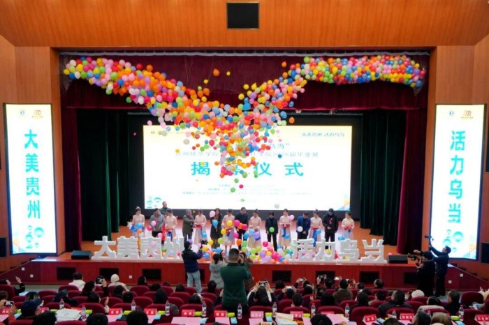 开幕式上,乌当区向学校赠送了“十年十县”服务计划牌匾,相关领导、嘉宾共同为“大美贵州·活力乌当”——2026届毕业作品展揭幕。美术与设计学院产品设计专业优秀毕业生代表蔡永晶作发言。全体与会人员观看了“大美贵州·活力乌当”宣传视频。