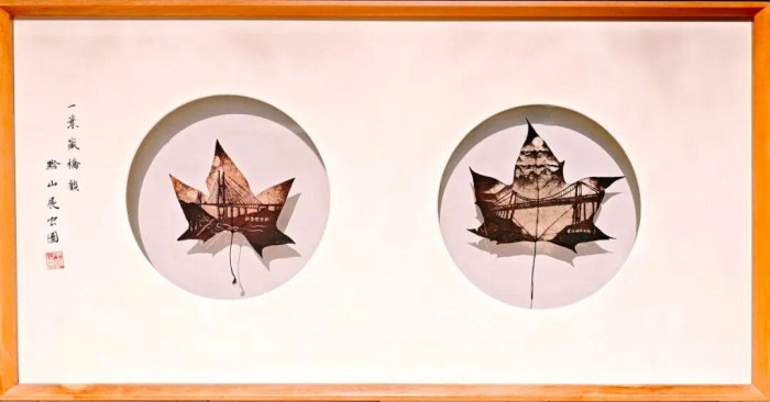 王波老师所传承的叶雕,是一门拥有两千余年历史的古老技艺。在他手中,落叶不再是生命的终点,而是艺术的开端。以叶为纸,以刀为笔,依据叶片天然的脉络构建骨架,将自然之美与人文底蕴融为一体,让每一片落叶都完成了最美的生命延续。在他的刀下,轻薄叶片成为承载时代精神的厚重载体——红船星火在叶脉间燎原,壮美大桥在刻刀下呈现,贵州的民族风情与壮阔图景凝于方寸之间,使叶雕从单纯的工艺展示升华为连接历史与当下的文化桥梁。