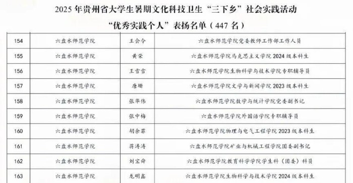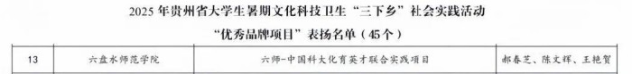 六盘水师范学院在贵州省大学生暑期“三下乡”社会实践活动评审中荣获30项荣誉