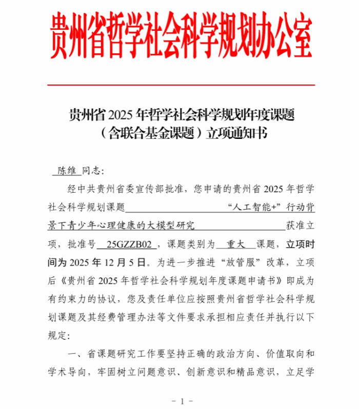 站在“十五五”开局新起点,贵州师范大学已明确将实施“科研聚能行动”作为重要发展战略,着力构建推动区域现代化建设的思想库、智囊团和创新策源地。学校将以哲社研究立项突破为契机,坚持不懈用习近平新时代中国特色社会主义思想凝心铸魂,将学术研究融入党和国家的事业大局,面向“国之大者”“省之大计”推动有组织科研,进一步聚焦贵州围绕“四新”主攻“四化”主战略,持续深耕“四大文化工程”等特色研究领域,强化跨学科协作,紧扣“两个结合”聚智聚力,产出高质量资政报告,让更多哲社研究成果转化为服务贵州高质量发展的实际成效。学校将继续加大科研支持力度,优化资源配置,努力建设教师教育优势突出的区域高水平大学,为推进中国自主知识体系构建、助力贵州文化强省建设贡献更多智慧与力量。