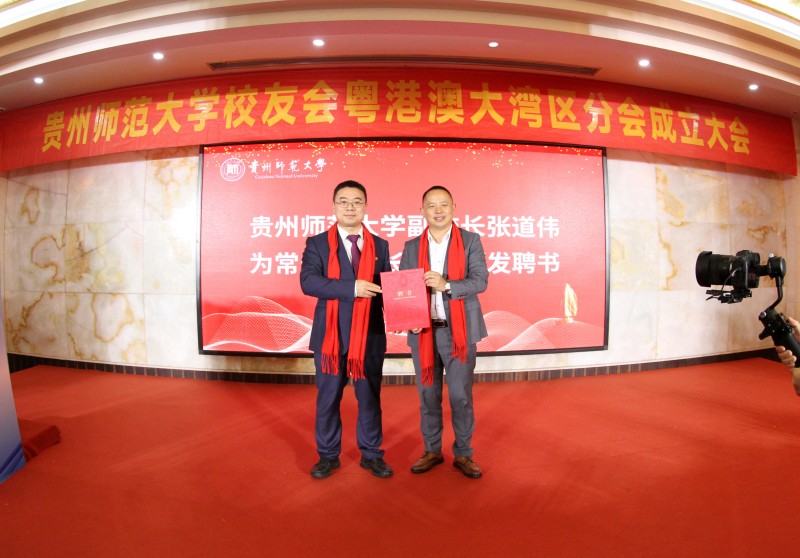 在成立大会上,张道伟宣读了《关于“贵州师范大学校友会粤港澳大湾区分会成立申请”的批复》。张绍东向分会授予“贵州师范大学校友会粤港澳大湾区分会”牌匾,并为分会会长黎永梅、常务副会长彭强颁发聘书;张道伟为分会副会长颁发聘书;孙克艳为分会监事长、秘书长、副秘书长及理事等分会其他核心成员颁发聘书。