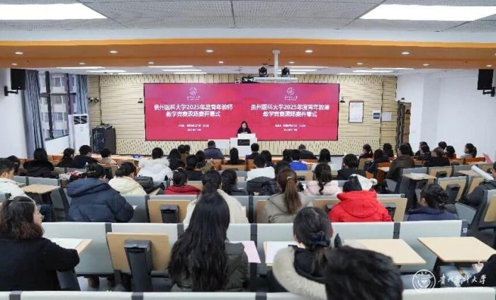 近日,贵州医科大学2025年度青年教师教学竞赛在云漫湖校区临床组团智慧教室举行。本次竞赛由贵州医科大学教务处主办,党委教师工作部、校工会协办,来自全校17个学院及12所附属医院的34名青年教师同台竞技、切磋交流,展现新时代青年教师的教学风采与育人担当。副校长洪峰,教学质量监控与评估办公室主任、教务处副处长修江帆、党委教师工作部部长张兴、校工会主席张婷婷参加开幕式,教务处副处长张吉主持。