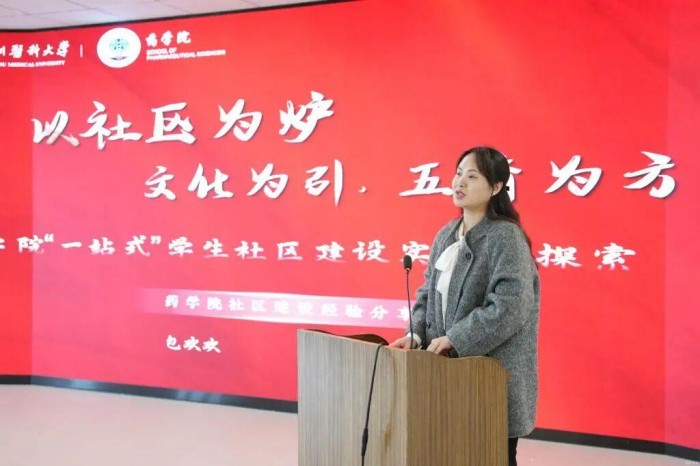 会后,全体人员在弘远楼路演厅开展“经验共叙”专题分享。药学院党委副书记包欢欢以《以社区为炉,文化为引,五育为方——药学院“一站式”学生社区建设实践与探索》为题交流学生社区建设心得。口腔医学院辅导员刘逸洲通过《大英奇妙季》分享海外访学见闻与思考。运动与健康学院辅导员周小援以《从“困局”到“破局”:一名辅导员的成长与求索》为题,生动讲述了个人职业成长历程。现场交流深入,氛围热烈。