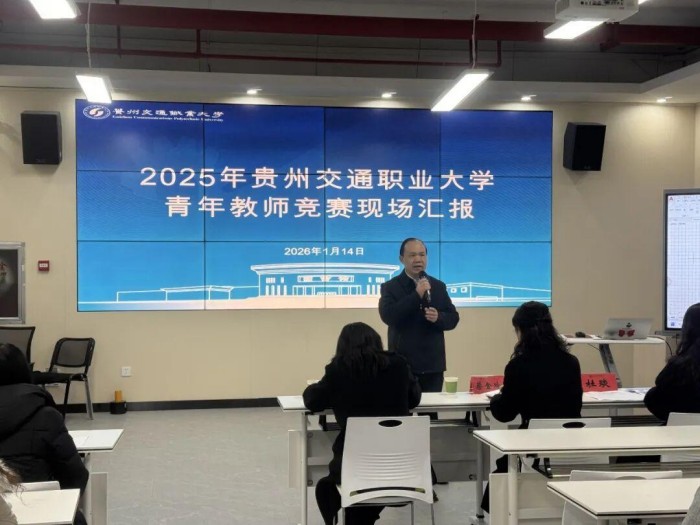 1月14日,贵州交通职业大学2025年青年教师教学竞赛成功举办,校党委副书记、校长刘雁现场指导并讲话。本次竞赛由教务处牵头组织,旨在深入贯彻落实国家关于职业本科教育高质量发展的战略部署,进一步激发青年教师教学热情,锻造“四有”高素质专业化教师队伍,切实提升学校整体教学水平与人才培养质量。