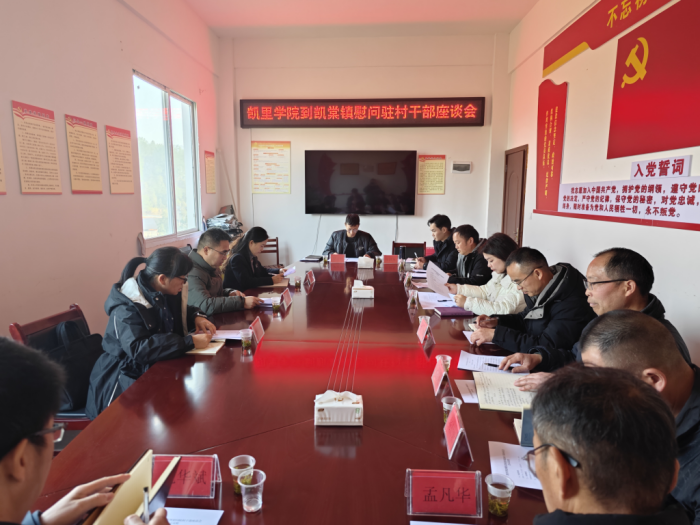 在凯棠镇,党委副书记、校长龙健,纪委书记贺敏一行与驻村干部座谈交流。龙健组织学习了党中央和省委关于乡村振兴的决策部署,驻村工作队及凯棠镇党委分别汇报了工作进展。校领导与驻村干部亲切交谈,详细了解大家的工作生活情况,充分肯定了大家扎根基层、实干担当的精神。校领导勉励大家进一步振奋精神、坚定信心,以更加饱满的热情、更加有力的举措,为当地全面推进乡村振兴贡献更多“凯院智慧”。
