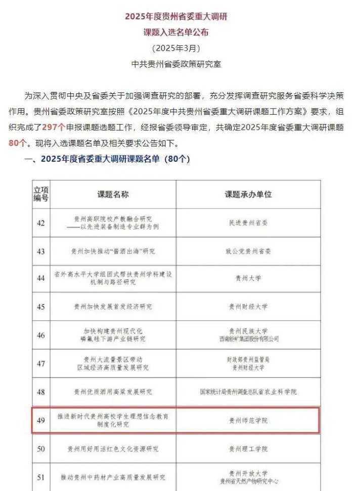 具体怎么做?他从自身的实际情况出发,深度结合自己的学科专业、研究专长,2025年组织申报获批1项贵州省委重大调研课题,持续在全省30多所高校开展课题研究工作,共收集问卷1573份,撰写3万余字咨政报告获省领导批示,以实际行动服务贵州省委工作决策。同时,积极搭建黔鲁两省高校的交流平台,实现齐鲁师范学院、山东警察学院等高校与贵州师范学院、贵州师范大学、贵州大学等高校交流互动,促成贵州师范学院马克思主义学院和山东师范大学马克思主义学部签署共建协议,实现共建共享共赢。