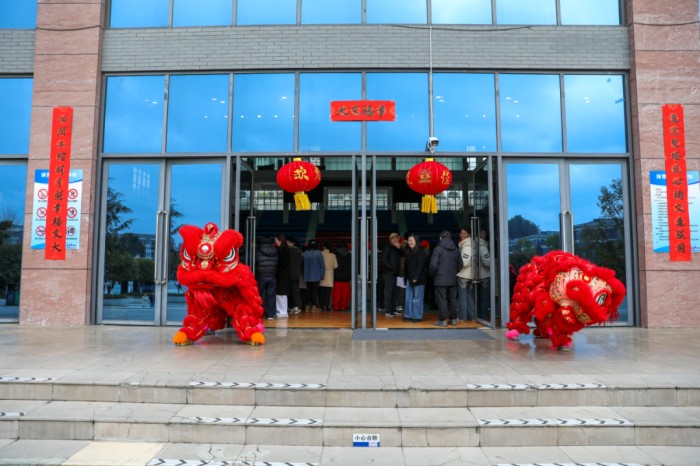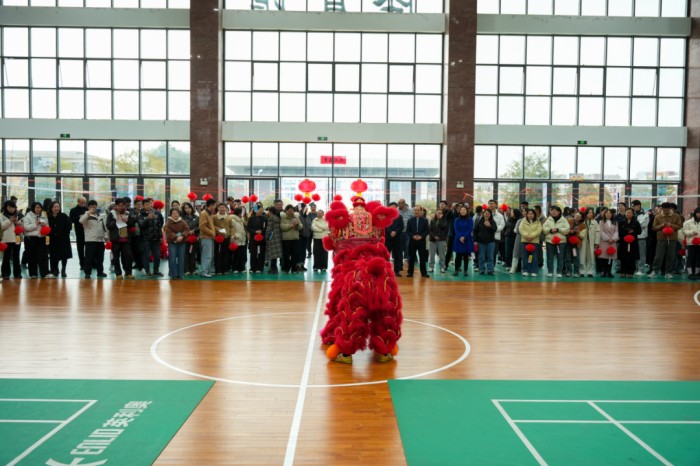 整场活动在路桥工程学院与建筑工程学院4名大二学生带来的舞狮表演中拉开帷幕。只见两头“红狮”随着节拍腾挪闪跃,或威武灵动,或憨态可掬,精彩表演瞬间点燃了全场气氛,博得阵阵喝彩。