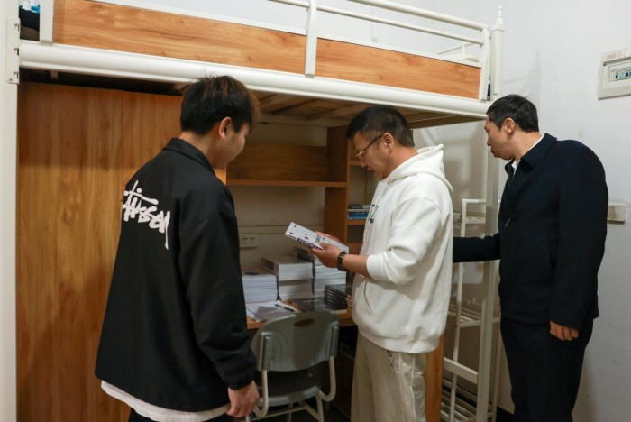 随后,校领导前往学生宿舍,先后查看公共洗衣机、自动售卖机等生活服务设施运行状况,详细了解供水、供电、便民服务等细节。走进宿舍,校领导与同学们亲切交谈。看到大家崭新的课本,关切询问新学期课程安排、学习计划。“来自哪里?”“返校路程远不远?”“旅途是否顺利?”一句句家常,一声声问候,简单却格外暖心。