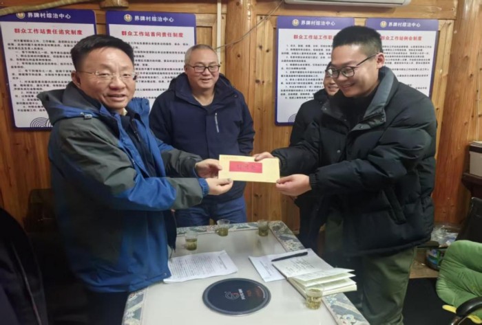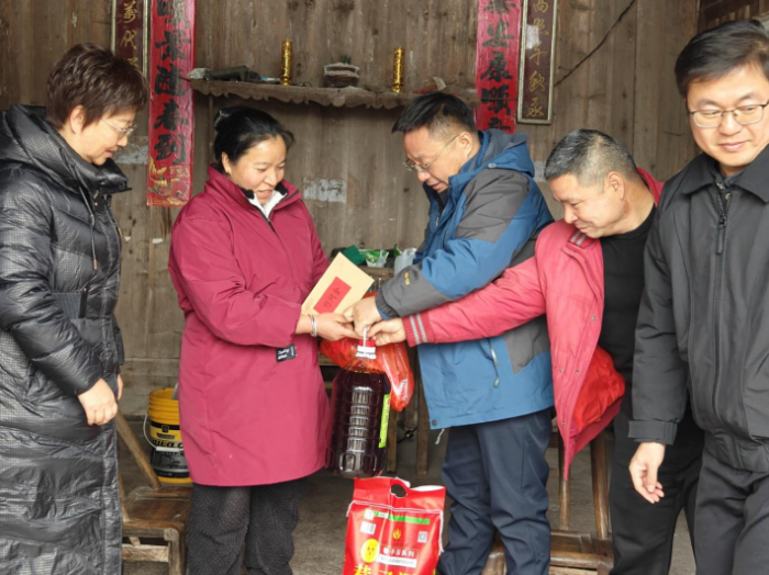 党委副书记、校长项光亚一行来到玉屏侗族自治县亚鱼乡郭家湾村,与驻村干部龚向胜座谈交流,了解驻村成效与产业推进情况,鼓励他发挥专业优势推动科研成果转化,以“铜职担当”助力乡村振兴。慰问组还为困难群众送上慰问金、米油和春联,拉家常、问冷暖,让群众切实感受到学校的牵挂。