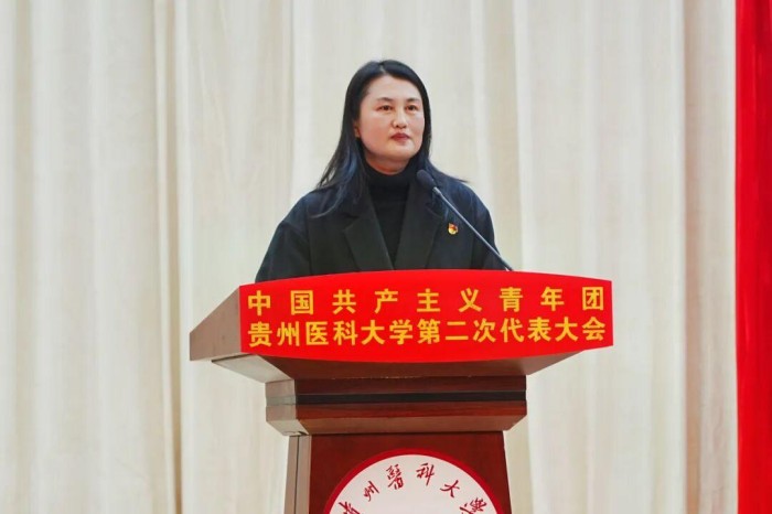 校团委书记王妤煜代表共青团贵州医科大学第一届委员会作工作报告。报告系统回顾了共青团贵州医科大学第一次代表大会召开以来学校共青团取得的各项成绩和经验,提出了新征程上学校共青团的使命任务和思路举措。