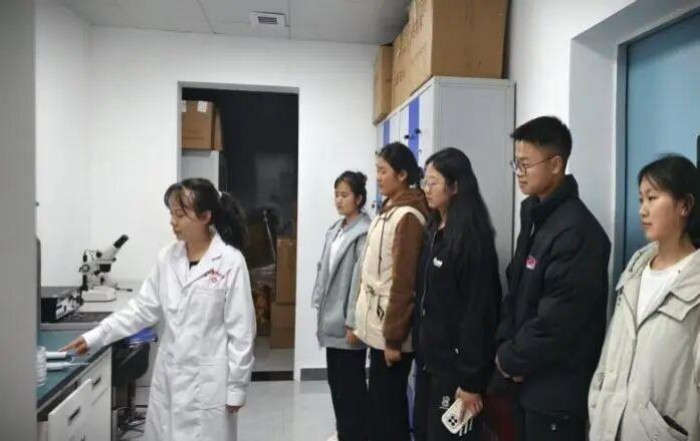 参观过程中,同学们好奇心与求知欲充分迸发,围绕实验规范、设备原理、技术应用等问题踊跃提问,与老师们深入交流探讨。在一问一答、一观一思之间,科学的严谨与魅力尽显,现场学习氛围浓厚而热烈。
