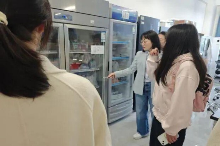 专题分享后,同学们在实验中心老师的带领下,有序走进细胞培养室、无菌操作区、细胞冻存库及高端显微成像实验室等核心区域。老师们细致讲解、规范演示,从细胞培养、实时观察,到样本检测、低温冻存,完整展示了科学实验的严谨流程,让抽象的知识变得可感、可学、可悟。