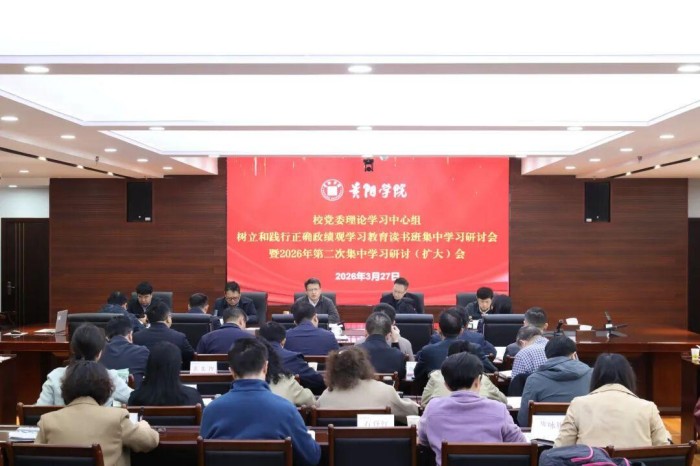 3月27日上午,贵阳学院党委理论学习中心组树立和践行正确政绩观学习教育集中研讨会在九思楼八楼会议室举行。校党委书记黄营主持并讲话。