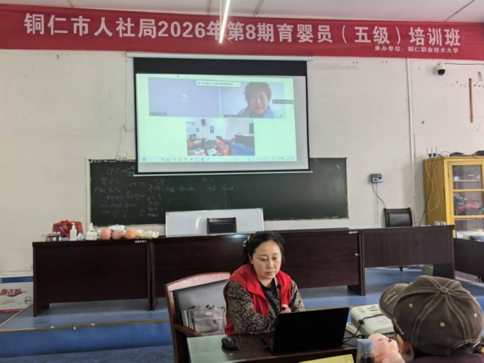 3月28日,铜仁职业技术大学举办的铜仁市人社局2026年第八期育婴员(五级)培训线上宣讲现场,参训学员向浙江蓓蕾家政集团董事长张峰娥提问,拉开宣讲序幕。为提升育婴员技能、搭建校企沟通桥梁、助力学员就业,本次培训有序推进,张峰娥董事长受邀带来行业资讯与就业指导,全体学员全程聆听。