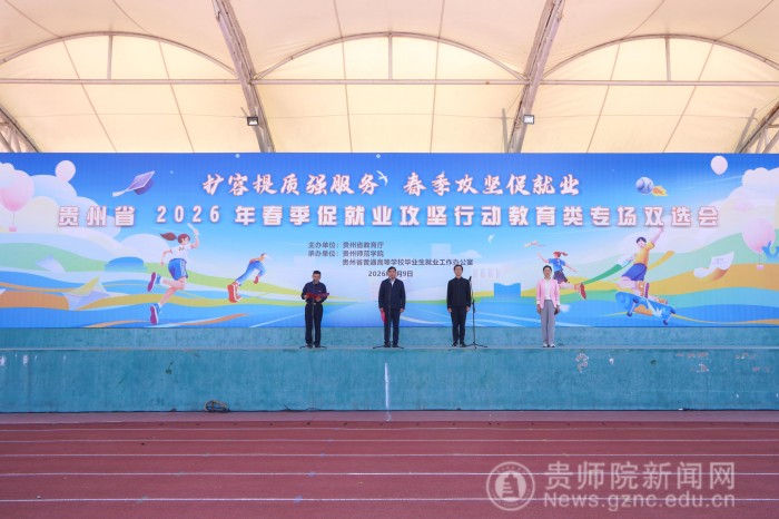 为深入学习贯彻党的二十大精神及习近平总书记关于教育的重要论述,全面落实党中央、国务院和省委、省政府关于高校毕业生就业工作的决策部署,扎实推进教育部2026届高校毕业生就业扩容提质行动,4月9日,由贵州省教育厅主办,贵州师范学院、贵州省普通高等学校毕业生就业工作办公室承办的“扩容提质强服务 春季攻坚促就业”—贵州省2026年春季促就业攻坚行动教育类专场双选会在贵州师范学院足球场举行。