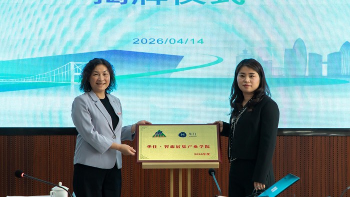 仪式上,曾丽致辞。她表示,安顺学院酒店管理专业依托黄果树等世界级景区资源,实践教学基础良好,与华住集团携手共建产业学院,将进一步推动专业与产业精准对接、教学与岗位深度融合,打通人才培养、实习实训、就业输送全链条,为学生成长成才搭建更高平台,为贵州酒店业和文旅产业高质量发展提供有力人才支撑。