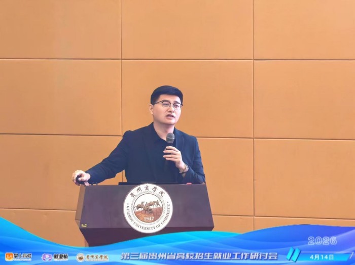 4月14日,2026(第三届)贵州省高校招生就业工作研讨会在贵州商学院成功举办。本次会议由掌上高考・就业桥主办,省内多所本科、专科院校招生就业工作负责人及行业专家齐聚一堂,围绕高考招录趋势、智慧招生、智能就业服务等议题展开深度交流,共探高校招生就业高质量发展新路径。会议由贵州商学院招生就业处处长唐雪梅主持。