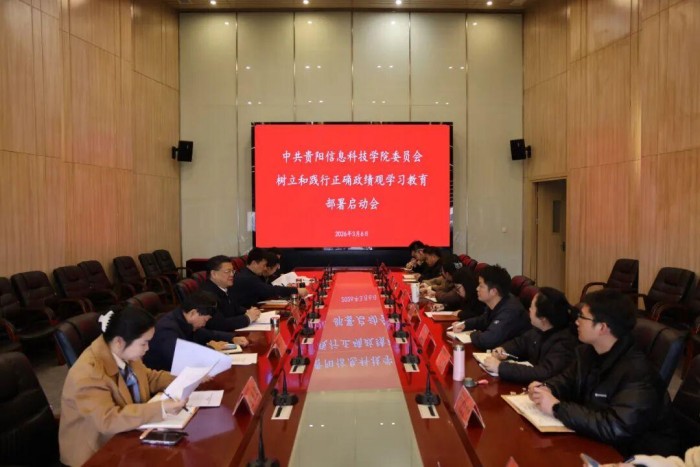 3月6日,贵阳信息科技学院在图书馆五楼会议室召开树立和践行正确政绩观学习教育部署启动会。会议深入学习习近平总书记关于树立和践行正确政绩观的重要论述,传达学习中央党的建设工作领导小组会议、省委常委会暨省委党的建设工作领导小组会议、省委教育工委会议等有关会议精神,审议通过《中共贵阳信息科技学院委员会树立和践行正确政绩观学习教育实施方案》,部署启动全校学习教育工作。省教育厅(省委教育工委)民办高校党组织书记、学校党委书记邓维实主持会议并讲话。学校党委领导班子成员出席会议。各党总支书记,学校党政办、党委组织部、党群工作部、学生工作部等相关单位部门负责同志参加会议。