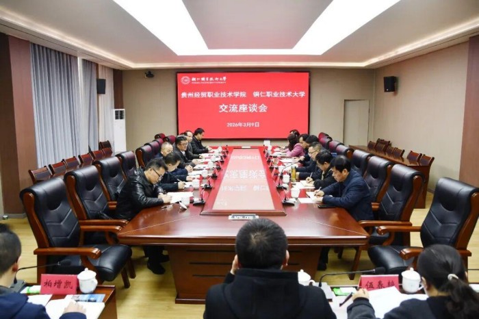 为深化校际合作,共享办学经验,助推职业教育高质量发展,3月9日,贵州经贸职业技术学院党委副书记、院长张家俊一行来铜仁职业技术大学交流座谈。学校党委副书记、校长项光亚,党委委员、副校长朱锋钊,党委委员、宣传部部长吴永东,党委委员、组织人事部部长杨洋出席座谈,学校党政办、继续教育学院、教学工作部、学生工作部、实验实训中心负责人参加。座谈会由学校党委委员、副校长王锋主持。