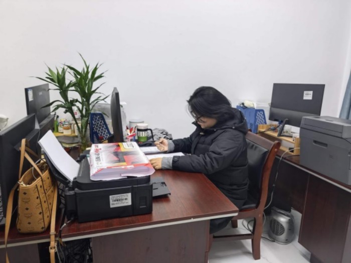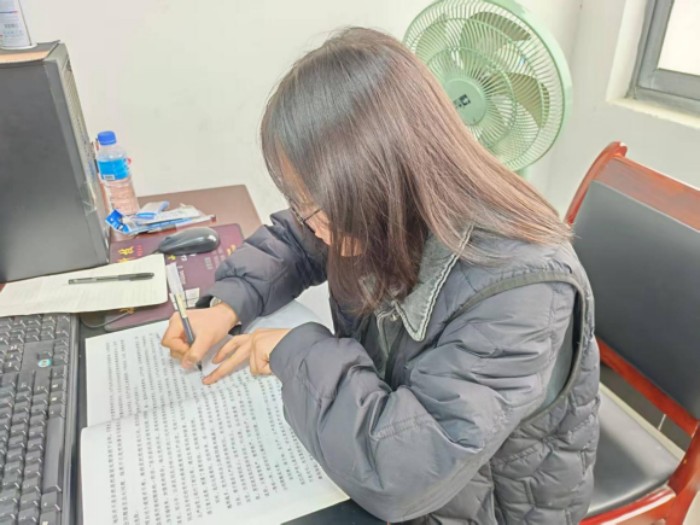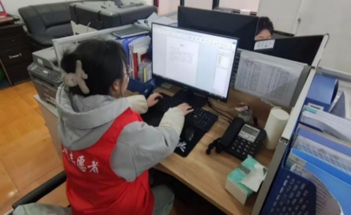 ▲历史与档案学院王悦涵在街道办事处做日常资料整理以及协助居民办事的基础服务工作