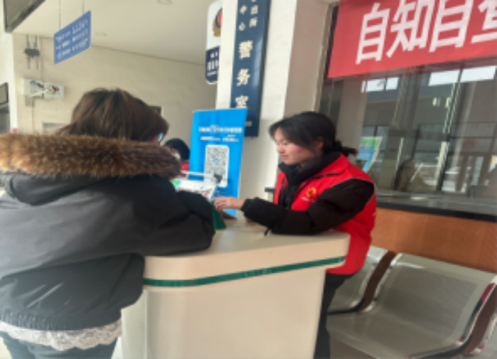 ▲地理与资源学院莫锦涛在社区服务中心做医保报销、居住证登记等工作