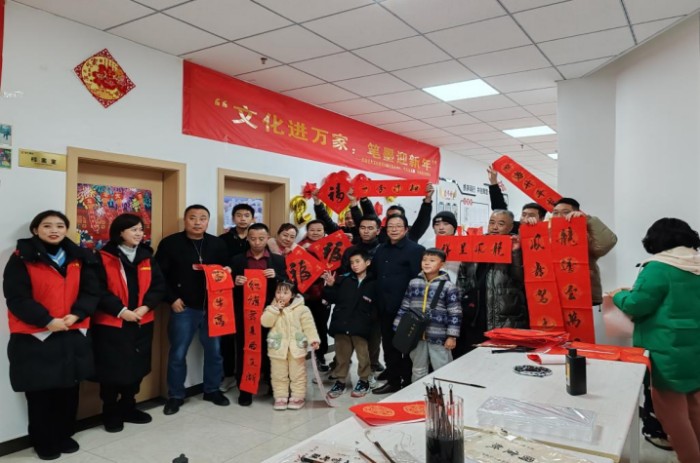 ▲旅游文化学院柏佳新在谷立村做“赏年画、写春联、过大年”文明实践活动志愿者工作