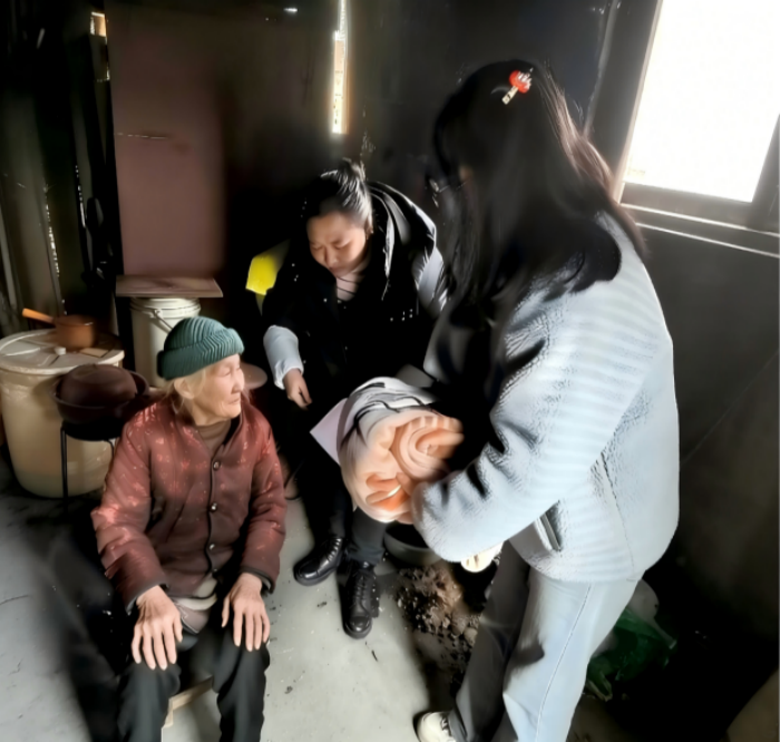 ▲历史与档案学院张英翠在普安县地瓜镇木卡村村委会做发放困难老人慰问品工作