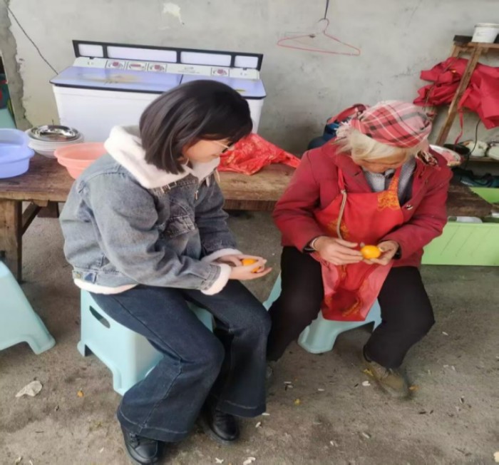 ▲生物科学学院李美琳在野钟苗族彝族布依族乡发射村叶家寨组做陪伴老人工作
