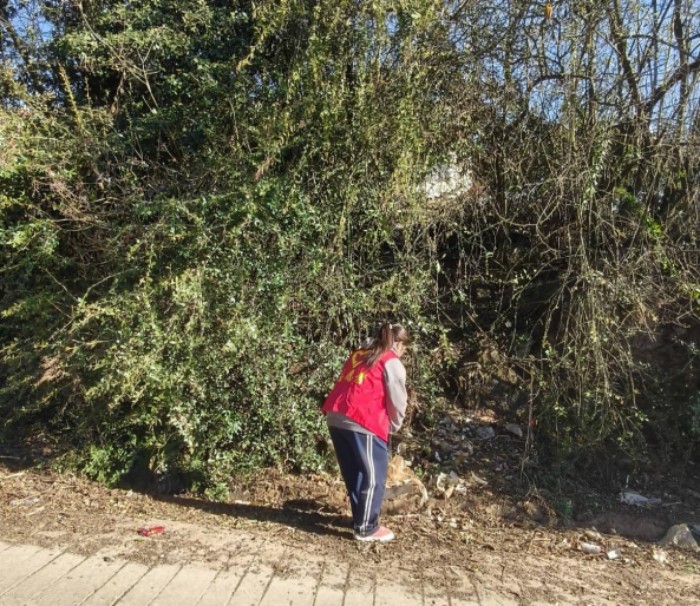 ▲地理与资源学院谢春香在家乡做垃圾清扫工作