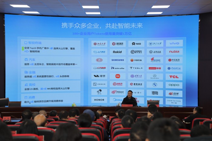 讲座中,帅圣鹏围绕“大模型支撑下的教育协同创新与探索——火山引擎教育大模型实践分享”做了专题辅导,梳理了字节跳动及火山引擎的发展脉络,解读了人工智能的政策导向与行业应用动态,并从智慧校园、产教融合等维度,展示了当前大模型在教育协同创新中的具体场景与实践案例,内容丰富、案例详实。