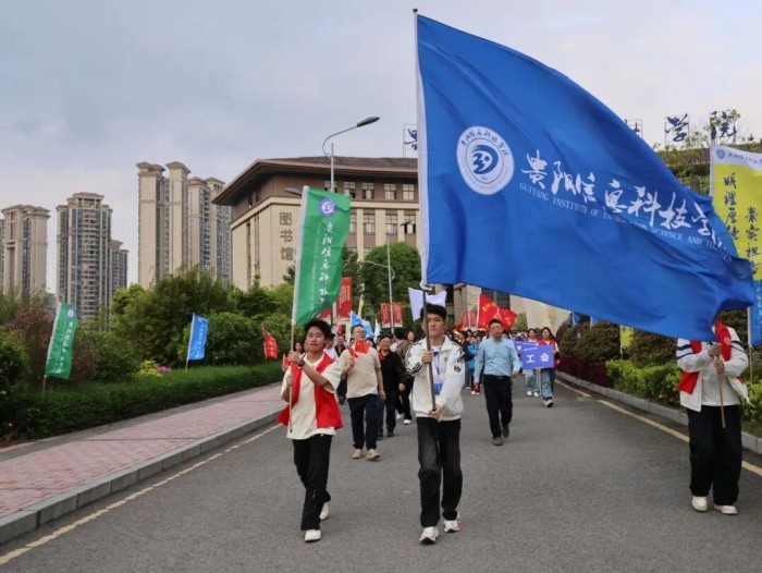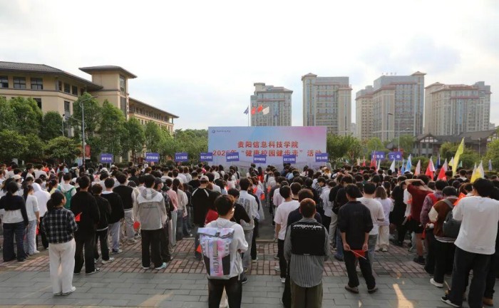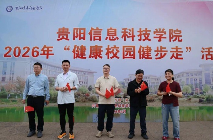为深入贯彻教育部2026年《关于全面推进健康学校建设的指导意见》精神,全面落实“健康第一”教育理念,扎实推动体教融合与健康校园建设,4月16日,贵阳信息科技学院举办2026年“健康校园健步走”主题活动。治校专家罗永祥教授,党委副书记詹凯,副校长罗卫东,财务总监周文娟,纪委书记黄晓儒等在家校领导出席活动,全校共1000余名师生参与活动。