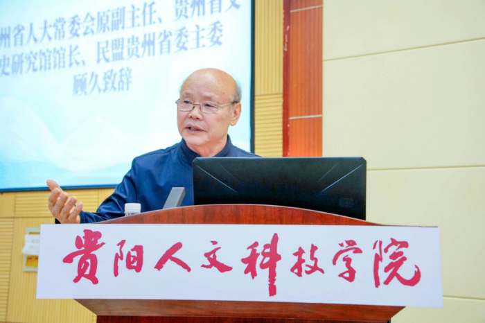 贵州省人大常委会原副主任、贵州省文史研究馆原馆长、民盟贵州省委原主委顾久致辞