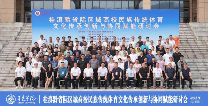 为深入贯彻落实文化强国战略,推动传统体育文化传承创新与协同发展,4月13日至16日,由百色学院、百色市文化广电体育和旅游局、百色市民族宗教事务委员会共同主办的“滇黔桂省际区域高校民族传统体育文化传承创新与协同赋能研讨会暨民族传统体育邀请赛”在广西百色学院澄碧校区举行。来自桂滇黔三省区的12所高校近200名师生代表参加活动。凯里学院作为协办单位,应邀参会并组队参赛。党委常委、副校长米小其带队,体育学院相关负责人、教练员、运动员共计16人组成代表团参加。