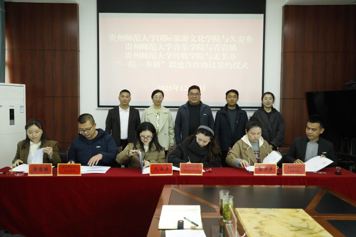 国际旅游文化学院团委与久安乡聚焦茶文旅融合、文化IP开发等,开展组织联建与产业助力;音乐学院团委与青岩镇围绕文旅宣传、文艺赋能、古镇文化活化等,深化校地协同;传媒学院团委与孟关乡在毕业生基层就业、乡村文明创建等方面实现精准对接。