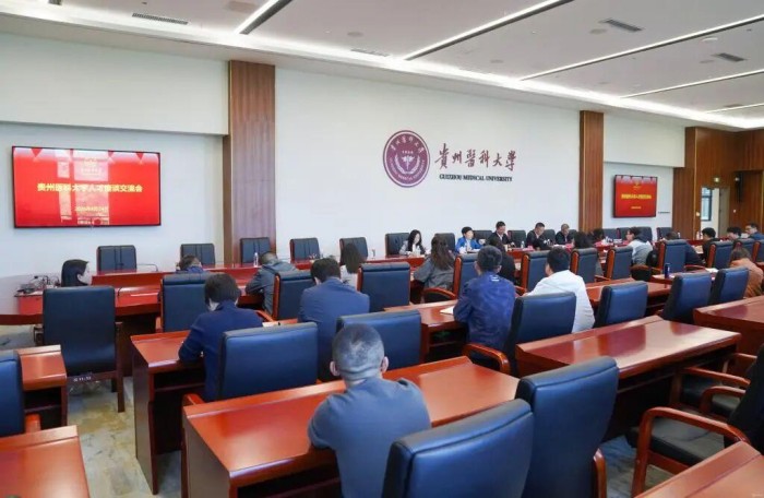 4月24日是贵州省“人才日”,为以专属节日方式持续叠加释放全校爱才惜才、敬才用才强烈信号,团结引领各类人才集智聚力推动学校高质量内涵式发展,贵州医科大学在云漫湖校区知雨楼六楼会议室召开人才座谈会。校党委书记、贵州省天然产物研究中心党委书记汤磊,校党委副书记、校长、贵州省天然产物研究中心党委委员、主任俞松,校党委副书记张洁,贵州省天然产物研究中心党委委员、副主任孙黔云,校党委常委、副校长齐晓岚,校党委常委、党委组织部部长李红出席。20位专家人才和教学名师代表,学校人才工作领导小组各成员单位主要负责人及有关工作人员参加。