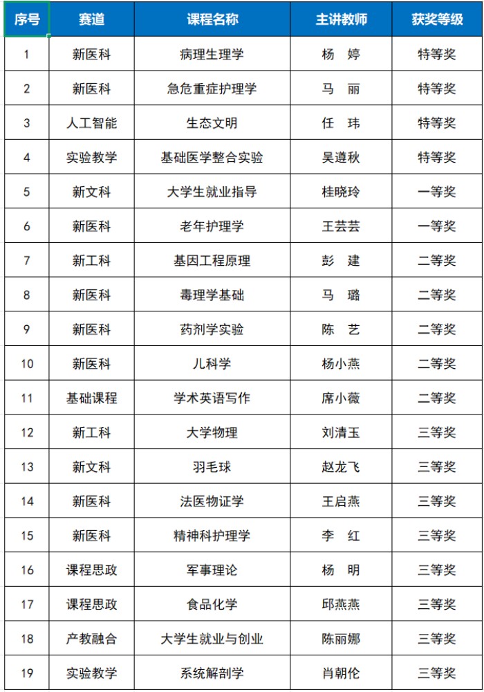 贵州医科大学获奖主讲教师名单