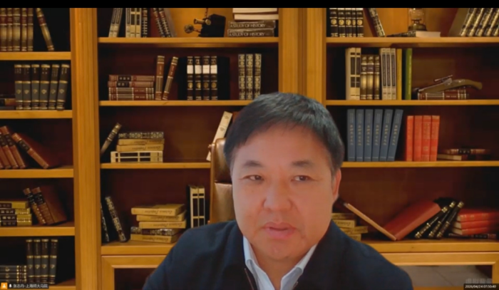 ▲全国大中小学思政课一体化建设联盟代表、上海师范大学马克思主义学院院长张志丹视频致辞
