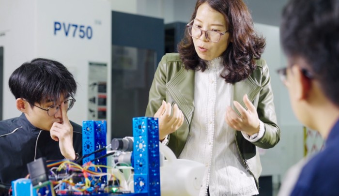 在教学上,王转坚信职业教育应与产业发展同频共振。她打破传统的“技能传授”模式,将“思维启迪”与“价值塑造”融入课堂。“默默耕耘,静待花开”是她的座右铭,也是她育人之路的真实写照。她指导学生团队攻克企业真实技术难题,融合3D打印技术研制“清淤机器人”,其主导的“管网卫士”项目在第十八届“挑战杯”全国大学生课外学术科技作品竞赛“揭榜挂帅”专项赛中一举夺魁,荣获特等奖,实现了全国高职院校在该项赛事中“零的突破”。