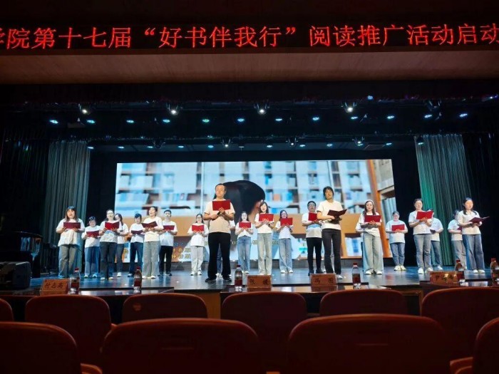 活动现场回顾了第十六届“好书伴我行”阅读推广活动的精彩瞬间,介绍了本届阅读推广活动的重点内容。本届阅读推广围绕“深耕书香沃土,滋养时代新人”主题,将通过主题图书推荐、专题讲座、经典诵读、艺术展览等形式,引导师生在书香浸润中增长知识、涵养品格,扎实推动书香校园建设,助力全民阅读走深走实。