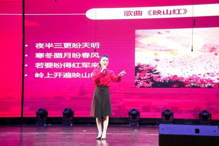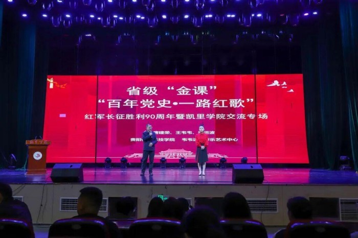 主唱王韦韦以动人的歌声深情演绎了《长征颂》《映山红》《春天的故事》等多个历史时期的红色经典曲目。凯里学院学生带来的舞蹈《游击队之歌》以及合唱《春风十万里》《侗歌声声唱给党》等,既展现了青年学子昂扬向上的精神风貌,也成为课程的一大亮点。唐建荣教授表示:“歌唱家与党史专家同台唱讲,是我们策划和设计‘百年党史·一路红歌’音乐党史课的教学理念,希望通过这种形式,将大家带入生动情境,使大家对革命历史感同身受,让党史学习教育如春风化雨,点点滴滴发挥着铸魂育人的作用。”