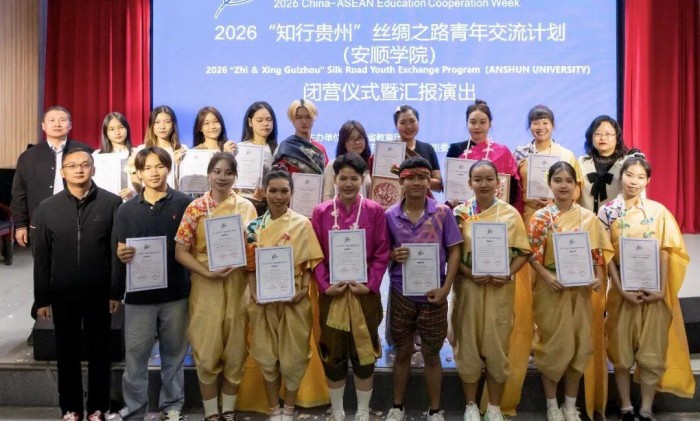 4月28日上午,安顺学院2026“知行贵州”丝绸之路青年交流活动闭幕式在学校音乐舞蹈学院一楼汇报厅举行。中外师生齐聚一堂,重温交流时光,共话深厚友谊,为此次中外青年文化交流活动画上圆满句号。