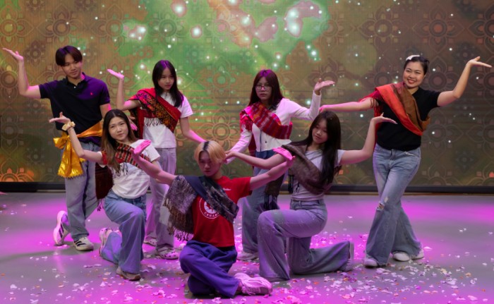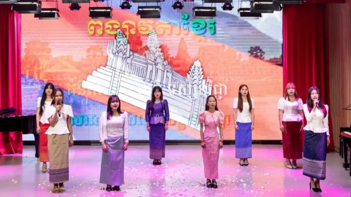 随后,闭幕式文艺汇演正式拉开帷幕,中泰越柬四国师生轮番登台,带来了一场多元文化交融的视听盛宴。音乐舞蹈学院的苗族舞蹈《铁路修到苗家寨》率先登场,灵动的舞姿展现了贵州苗族文化的独特风情;泰国呵叻皇家大学师生带来的传统舞蹈与泰拳表演,展现了泰国文化的热情与刚健;泰国阿努达萨学校师生表演的《降魔之舞》与歌曲《NuNew的真爱》,传递出泰国文化的浪漫风情。越南学生阮玉清芳、武阮明舒带来的越南歌曲《走在灿烂之中》,展现了越南文化的温柔韵味;柬埔寨学生则以《高棉族谱》表演呈现了该国文化的厚重底蕴。整场演出高潮迭起,掌声不断,多元文化在这里碰撞交融,充分展现了四国青年学子的风采与中外友好交流的真挚情谊。