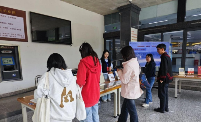 4月23日,活动特邀贵州民族出版社参加,集中呈现“‘四大文化工程’图书展”及“黔版好书”专区。其中,入选“中国好书”的《“村超”的乐子、路子与日子》与《“村BA”:观察中国式现代化的一个窗口》尤为引人注目。这些作品不仅仅是关于体育的热血记录,更是中国式现代化在贵州大地生动实践的微观缩影。师生们在翻阅中触摸到了乡村振兴的时代脉搏,感受到了贵州人民“敢为人先、乐观向上”的精神风貌。展出涵盖“阳明文化”“屯堡文化”“民族文化”的七十余种精品力作,增强了同学们对中华优秀传统文化的归属感与自豪感,激发了同学们更大的阅读探索的兴趣和热情。王毓副校长参加活动时强调,图书馆作为学校的文献信息中心与校园文化高地,既要挖掘本土文化的时代价值,又要打造具有辨识度的阅读品牌,让书香真正成为涵养师生精神力量的源头活水。