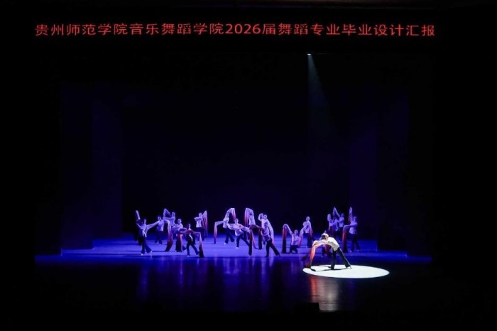 此次毕业设计汇报,既是2026届舞蹈学、舞蹈表演专业学子四年砺艺、逐梦成长的成果检阅,更是贵州师范学院音乐舞蹈学院深耕美育、立德树人的生动实践,彰显了学院在人才培养、艺术创作、社会服务与文化传承中的责任与担当。从基础训练的精益求精到剧目创作的匠心独运,从古典舞的薪火相传到民族民间舞的创新表达,学子们以舞为媒、以艺传情,用坚守诠释热爱,用专业传递力量。这场视听盛宴,不仅为学子们的大学时光画上了浓墨重彩的句号,更凝聚着学院的教学初心与育人使命,为贵州舞蹈艺术事业的传承发展注入新鲜血液,为新时代美育事业高质量发展书写了属于贵师院音舞人的奋进篇章。