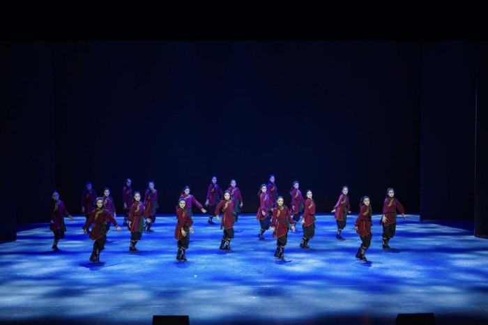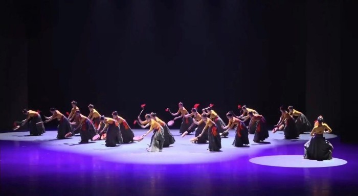 第二篇章《汲壤》以中国民族民间舞为核心,汇聚多民族舞蹈风采,沉浸式展现各民族文化的独特魅力。本篇章,学子们依次呈现《东北秧歌表演性组合》《维吾尔族铃鼓舞组合》《藏族热巴鼓风格性组合》《傣族大鹏组合》《苗族摆手表演性组合》《蒙古族马舞风格性组合》,或热烈灵动、或热情奔放、或雄浑大气、或柔中带刚、或质朴纯真、或豪迈洒脱,不同民族的舞蹈风格交相辉映,让现场观众在舞姿流转间,领略中华各民族文化的博大精深。