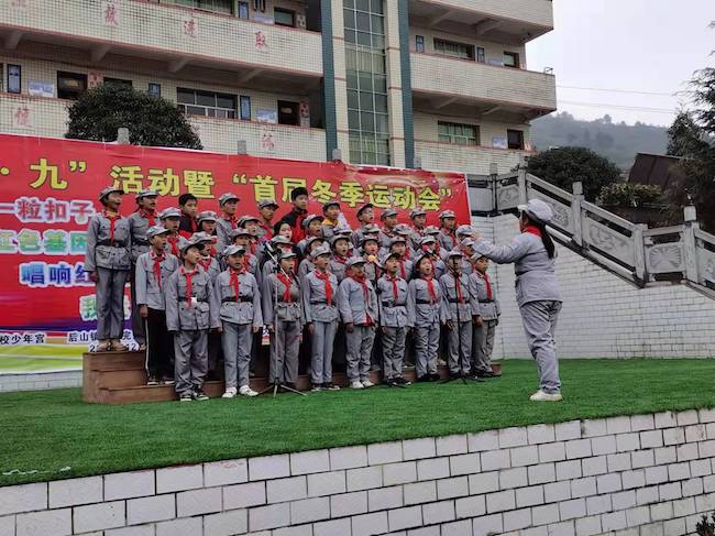 该镇中小学改变以往单纯的课堂授课方式,积极探索开展情景式、体验式教学,向社会征集后山系列红色歌曲10余首,组织开展“一二九”系列活动红歌合唱比赛、学生自创红歌比赛等,通过学唱《遵义会议放光芒》《四渡赤水出奇兵》《我们是共产主义接班人》等系列长征组歌,用优美的旋律、动人的童声、展示感人事迹,弘扬崇高品德,激励广大师生传承长征精神,向英模学习、向英模看齐,争当新时代的好少年。