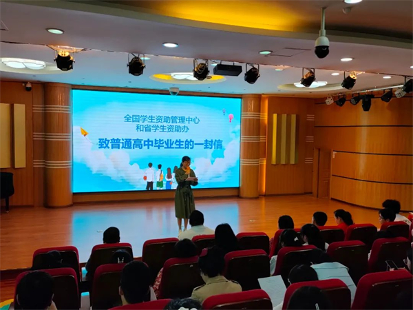 国家送安心。讲了安全,接着讲“安心”。教育处主任为大家简单解读了《全国学生资助管理中心和省学生资助办致普通高中毕业生的一封信》的内容,将党和国家对毕业生的贴心的关怀传达到位。经济有困难的毕业生可以入学前不愁,入学时不愁,入学后不愁,大家有国家做后盾,需要或不需要资助的同学都感到了安心。
