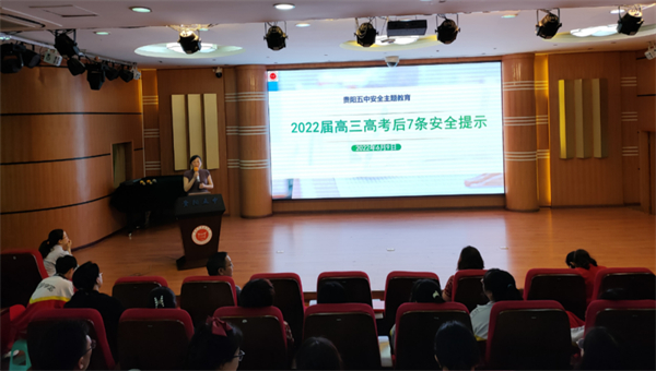 6月9日,贵阳五中开展2022届高三毕业生安全教育活动,由分管德育和安全工作的副校长郭华华为大家上高中最后一次“安全教育课”——考后7条安全提示。